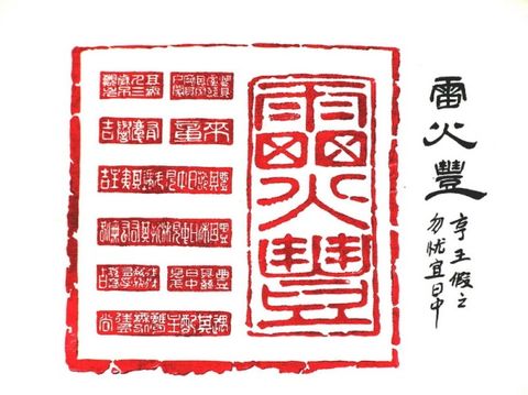 丰卦是《易经》六十四卦的第55卦,丰:成功收获,丰茂、盛大。主卦是离卦,卦象是火,光明而依附;客卦是震卦,卦象是雷,运动而乏力。主方被比喻为日食时的太阳,客方就可以比喻为日食中的月亮。雷火丰(丰卦)日中则斜,属上上卦。这个卦是异卦(下离上震)相叠,电闪雷鸣,成就巨大,喻达到顶峰,如日中天。告诫:务必注意事物向相反方面发展。治乱相因,盛衰无常,不可不警惕。这个别卦的卦爻辞用全日食过程作比喻,说明主方在客方的激烈挑战前,应当抓住机遇,创造对主方更有利的新局面。