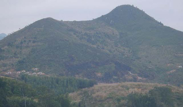 明堂前面较近穴场而低小的砂山称为案山,距离穴场较远而高大的砂山称为朝山。