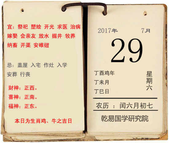 一、时间:公历:2017年7月21日;农历:【鸡年】闰六月初七;岁次:丁酉鸡年 丁未月 丁巳日。