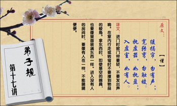 缓揭帘 勿有声 宽转弯 勿触棱 执虚器 如执盈 入虚室 如有人 事勿忙 忙多错 勿畏难 勿轻略 斗闹场 绝勿近 邪僻事 绝勿问