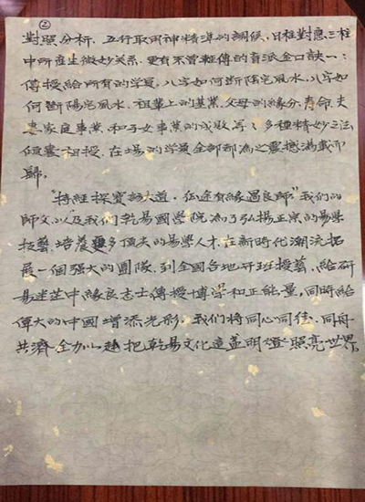 “持经探宝访大道,征途有缘遇良师。”我们的师傅以及我们乾易国学研究院为了弘扬正宗的易学技艺,培养更多顶尖的易学人才,在新时代潮流拓展一个强大的团队,到全国各地开班授艺,给研易迷茫中缘良志士传授博学和正能量,同时给伟大的中国增添光彩,我们将同心同德、同舟共济、全力以赴把乾易文化这盏明灯照亮世界。