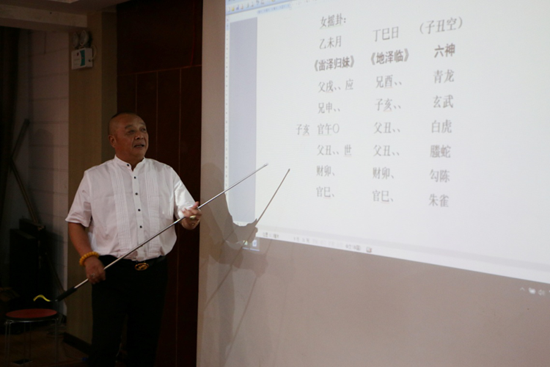 课堂上师傅讲到精彩之处,我们的热烈掌声不时的响起来……例如:摇卦人摇得卦,世爻旬空,入墓,怎么看呢?总不能说卦主进了医院,进了法院,或者别的什么不好的。在听老师在讲课中,我都一一了解的很清楚了。我觉得在学习班上,我象是一块海绵,要把师父所讲的知识像海绵吸水一样全都吸住,全部学会;并且加以运用让自己逐步提高水平;日后为师父分担肩上的任务。这次学习总觉得时间不够用的,培训时间太短了,可又不能太长了,因为所学的东西要慢慢的消化,要实践,才能成为我们所用。