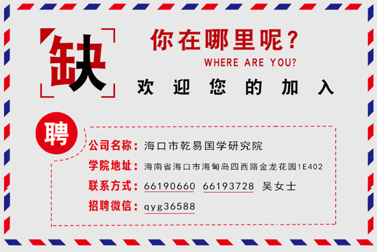 海口市乾易国学研究院因业务扩展需要,现诚聘以下人员: