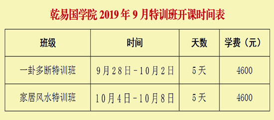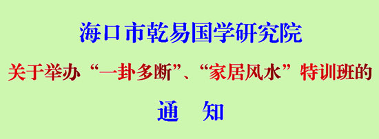 海口市乾易国学研究院定于2019年9月28日至10月8日在安徽省宿州市举办“一卦多断”与“家居风水化解”特训班。