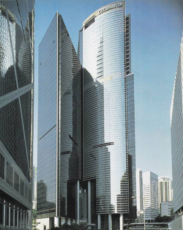 1990年在中银落成后,也许是“风水”的原因,附近的新造建筑外形都较特别,大家不妨看看李嘉诚的长江集团中心及万国宝通银行大厦的外形,只要在中银大厦与万国宝通银行大厦之间抬头一看,就会看到长江集团中心有如一个身穿金属保护衣的铁甲人,而万国宝通银行大厦则似一个拿着巨型盾牌的武士。