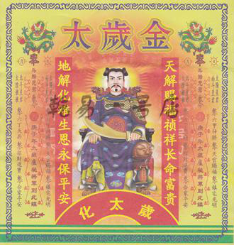 是为帮助犯太岁之善信平安避过太岁影响,化解太岁煞的神奇金纸,助犯太岁者扭转霉运,平安健康,富贵发财,无论何事均能逢凶化吉,顺心如意!