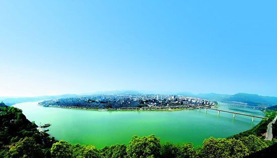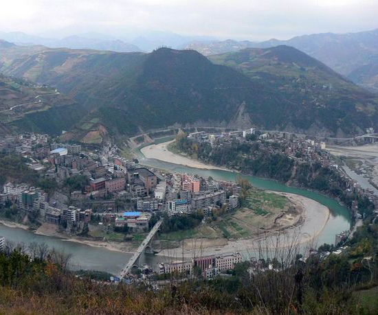 陕西旬阳县地理山水景观。自然界造化奇妙,水转山环,构成天然的阴阳太极图。