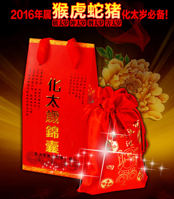 此锦囊注入光明祥瑞之能量与信息,使锦囊内本具有神奇灵性与化煞及转运功能的特殊吉祥物品,更能为猴年犯太岁的生肖挡煞去灾,逢凶化吉,遇难呈祥,使您的事业、学业、财运、事事顺利、大吉大利!