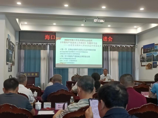 此次会议由杨林举同志和陈鹏同志共同主持,会议传达了学习海南省第八次党代表会精神,其中陈鹏同志进行了海南省第八次党代会精神的宣讲,海南师范大学的唐若玲教授则结合海南省近年的发展宣扬了海南省第八次党代会精神。此外,社科系统的吴英松主任进行了2021年度社会组织年检工作的培训。