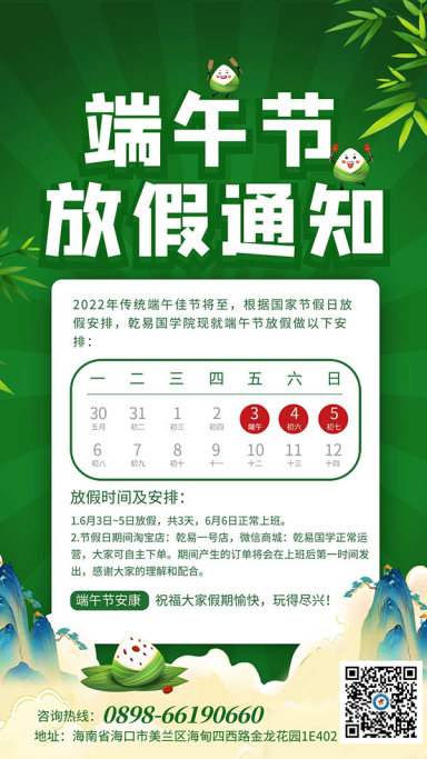 端午在古人心中是一个不吉祥的日子,按《易经》卦气,夏至午月对应姤卦,本是炎热的五月,却有一阴升起。周易智慧揭示了世间事物发展的实质和规律,盛极必衰,物极必反。阳极阴生,阴极阳生,五月初五是两个极阳的数字,两个五就意味着毒也。所以,端午节传统习俗以驱魔避邪为重心,吃粽子、赛龙舟、带五彩绳、插艾蒿、挂菖蒲、饮雄黄酒、挂钟馗像等习俗,都与中国的阴阳五行文化有密切关系。